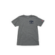 This grey blue t-shirt has  CBA BASKETBALL  screened in distressed navy blue.