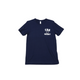 screened in navy blue on the front.