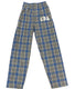These navy blue flannel pants feature a distressed CBA logo in white on the left side. They have a self-folded waistband that includes an internal drawcord, a concealed button fly, and convenient side pockets. - 100% cotton - machine wash cold; tumble dry low
