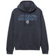 This youth sweatshirt in navy blue features the CBA Colt logo printed in white and Carolina blue. It includes a jersey-lined hood with double-needle hem, a front pouch pocket, side seam construction, and an EasyTear™ label.